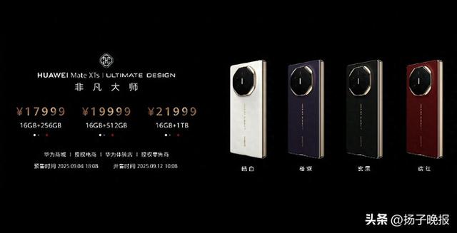 9月4日,华为三折叠屏手机Mate xTs非凡大师发布,搭载麒麟9020芯片和鸿蒙5.0系统。